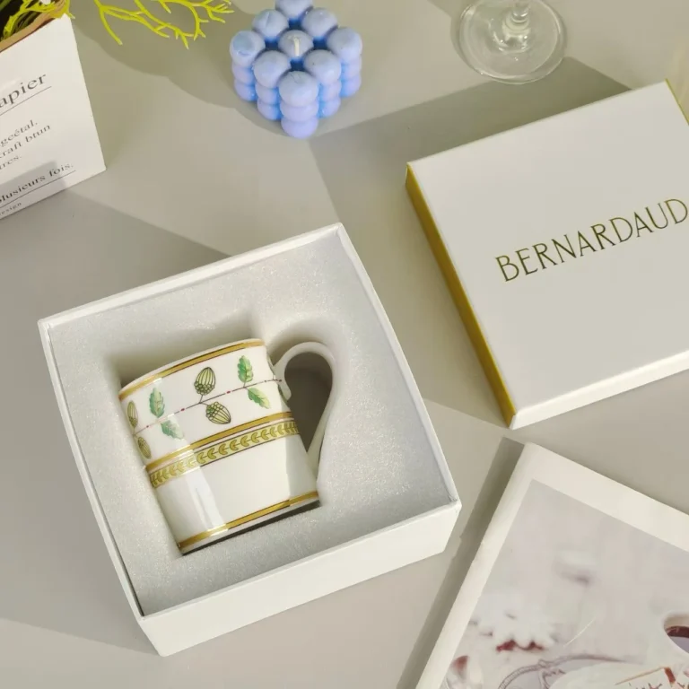 This Bernardaud single mug reflects the quiet sophistication of fine French porcelain. Designed for daily rituals, its refined silhouette and smooth glaze create a tactile and visual experience that elevates every sip. The balanced form rests comfortably in the hand, making it an ideal companion for moments of pause and reflection.