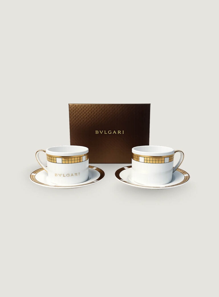 This curated Bvlgari cup set is crafted from fine porcelain and designed for refined everyday use. With its balanced form and timeless elegance, it enhances coffee and tea service with understated luxury.