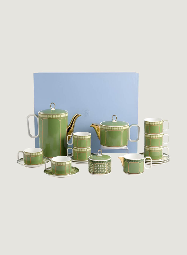 (Teacups, saucers, teapot, milk pot, sugar bowl – as per design)