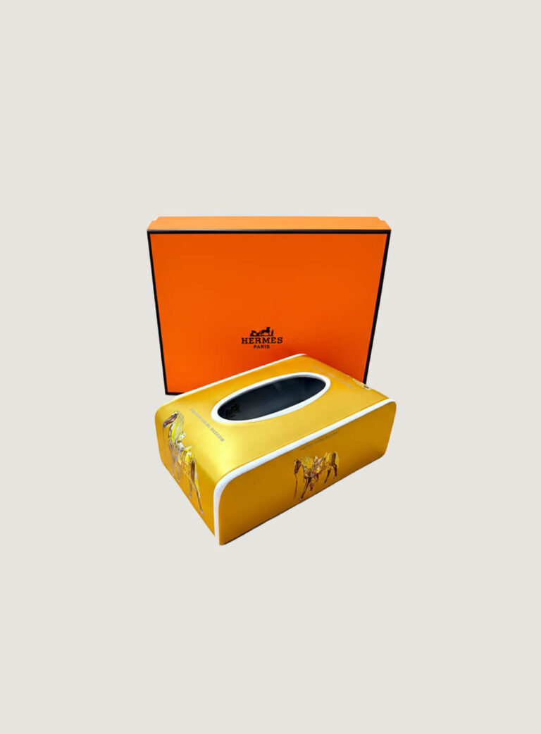 The Hermes Tissue Box – Golden Color (150) features a refined gold-tone finish and elegant design, perfect for elevating everyday essentials with luxury style.