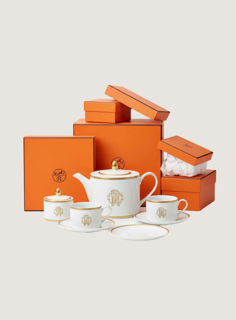The Versace Chinese Tea Cups Set of Four with Tea Pot brings iconic luxury to the art of tea. With elegant design and signature Versace motifs, this set transforms tea time into a refined and stylish experience for any occasion.