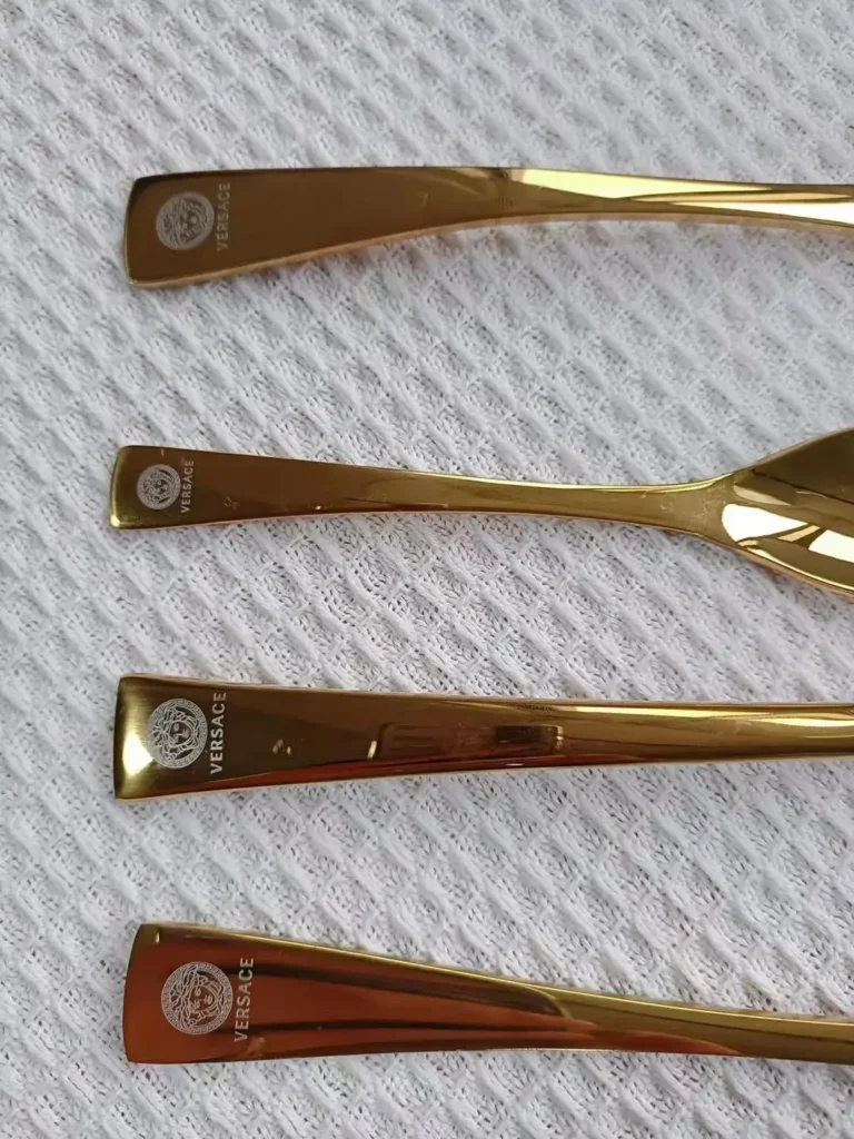 The Versace Gold Cutlery Set brings opulence and sophistication to your dining table. Finished in an elegant gold tone and designed with iconic Versace-inspired detailing, this luxurious cutlery set transforms every meal into a refined and memorable experience.