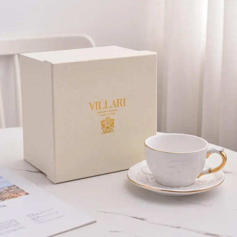 Crafted from high-quality porcelain or fine ceramic (depending on design), each cup features a smooth glazed finish, balanced proportions, and a comfortable handle. Whether you prefer rich espresso, creamy cappuccinos, or delicate tea, this cup reflects Villari’s signature blend of beauty and utility.